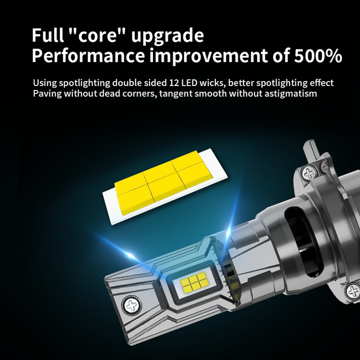 500% zwiększona jasność i doskonała widoczność nocna: Doświadcz ogromnej poprawy wydajności dzięki naszej aktualizacji „full-core”, wykorzystującej dwustronne 12 diod LED. Zapewnia to 500% wzrost jasności w porównaniu do standardowych żarówek halogenowych, oferując lepszy, bardziej skoncentrowany efekt oświetlenia dla wyraźniejszej i bezpieczniejszej jazdy bez martwych punktów czy astygmatyzmu.
