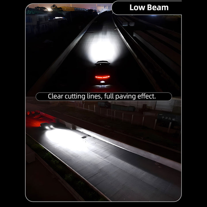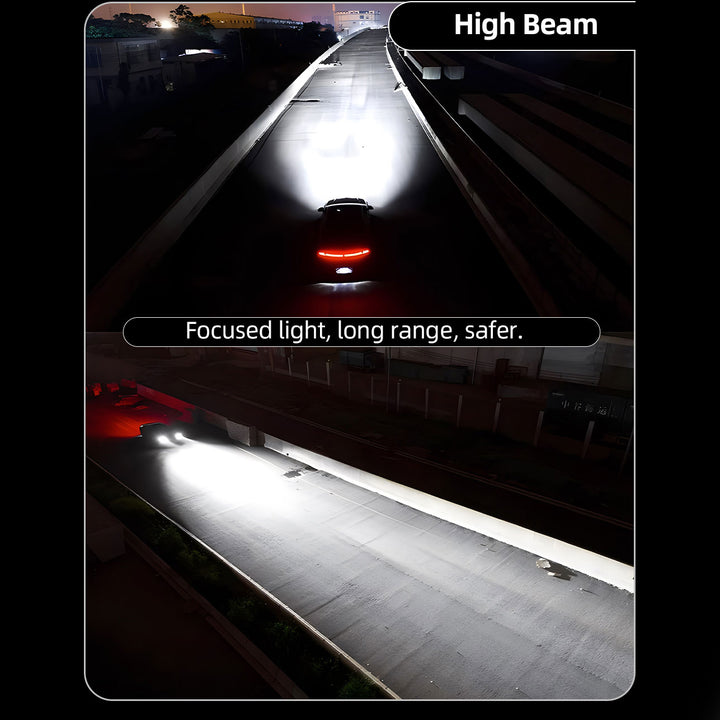 IDEALNY WZÓR WIĄZKI ŚWIATŁA I BEZPIECZEŃSTWO: Projekt optyczny naśladuje pozycję włókna halogenowego, aby wytworzyć superskoncentrowany wzór wiązki światła. Światła mijania zapewniają wyraźne linie odcięcia z pełnym efektem oświetlenia drogi, natomiast światła drogowe oferują skupioną, dalekosiężną widoczność. Ta precyzja gwarantuje wyraźne widzenie bez oślepiania nadjeżdżających pojazdów, tworząc bezpieczniejsze warunki jazdy.