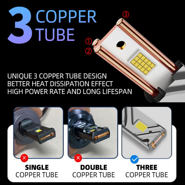 REWOLUCYJNY SYSTEM CHŁODZENIA Z 3 MIEDZIANymi RURKAMI: W przeciwieństwie do standardowych żarówek wykorzystujących pojedyncze lub podwójne rurki cieplne, ten model posiada unikalny, wysokiej jakości system z 3 miedzianymi rurkami dla lepszej przewodności cieplnej. W połączeniu z obudową z aluminium lotniczego i cichym wentylatorem turbo o prędkości 15 000 obr./min, architektura chłodzenia matrycowego skutecznie zapobiega przegrzewaniu, zapewniając stabilną wysoką moc i znacznie dłuższą żywotność.