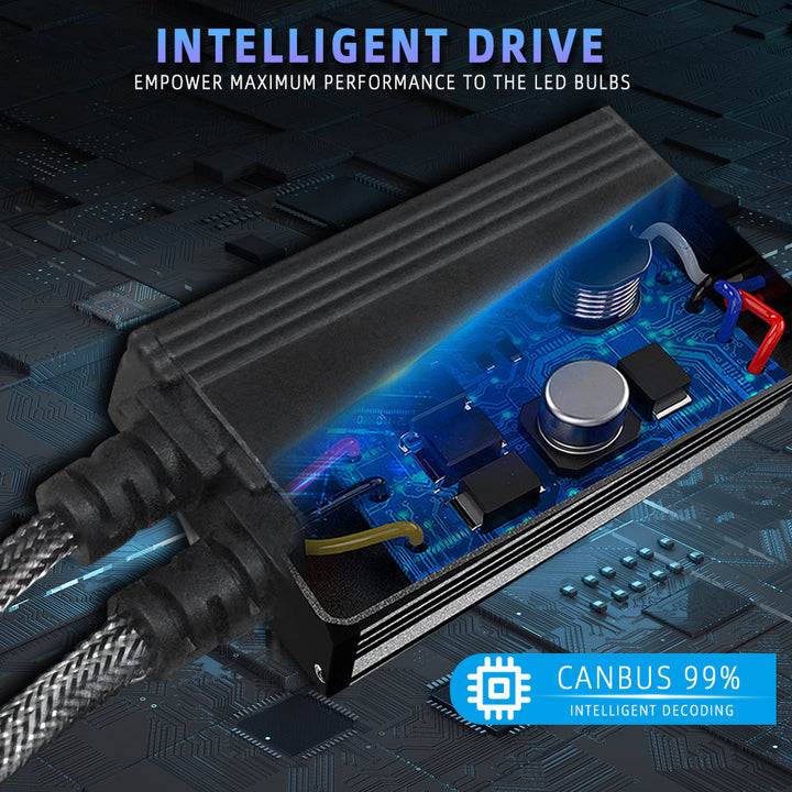 99% ZGODNOŚĆ Z CANBUS I INTELIGENTNY STEROWNIK: Wyposażone w zewnętrzną inteligentną skrzynkę sterującą, te żarówki posiadają zaawansowane możliwości dekodowania. Są kompatybilne z 99% systemów pojazdów, rozwiązując typowe problemy takie jak błędy na desce rozdzielczej, migotanie czy zakłócenia radia. Zewnętrzny sterownik oddziela również zasilanie od korpusu żarówki, co dodatkowo pomaga w zarządzaniu ciepłem.